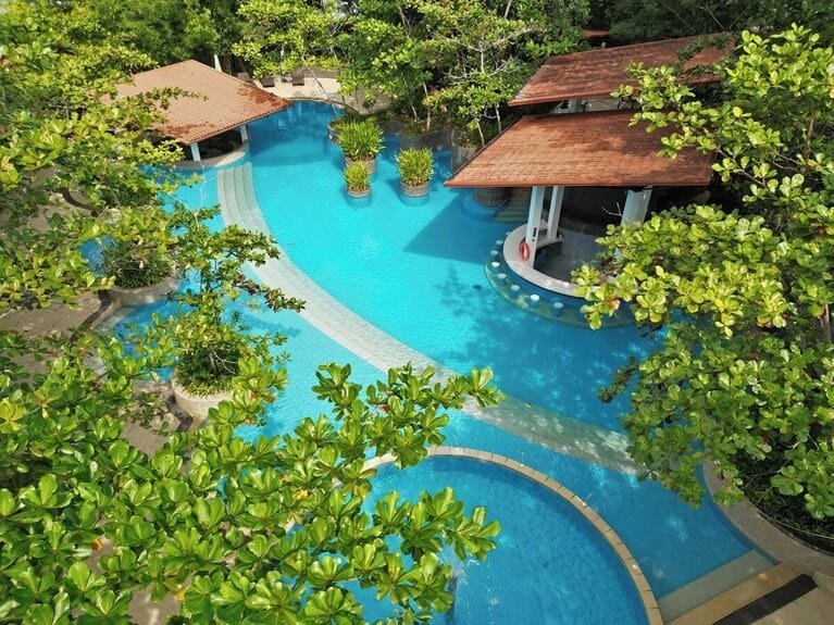 Dive into our expansive pool, a refreshing centerpiece designed for relaxation and leisure. Surrounded by open skies and tropical scenery, it offers the perfect place to unwind, swim, and soak in the serene resort atmosphere.